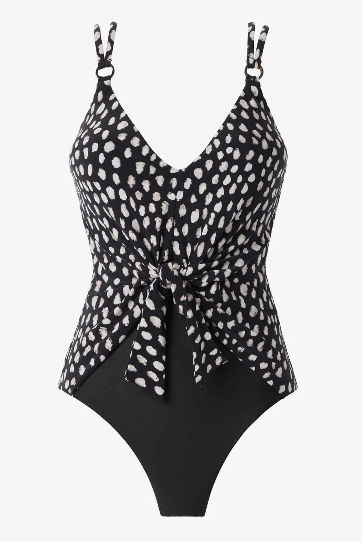 • Removable Soft Cup Bra For Added Support • V-Neckline • Adjustable Straps • Sleek Ring Hardware At Straps • Full Straight Back • Moderate Leg Cut • Provides Allover Slimming & Shaping • Adjustable Tie Front• Polina Is 5’11” And Wearing A Size 8 • Body: 95% Polyester, 5% Spandex• Complete Your Look With A Matching • Like This Silhouette? View All Colors And Prints For
