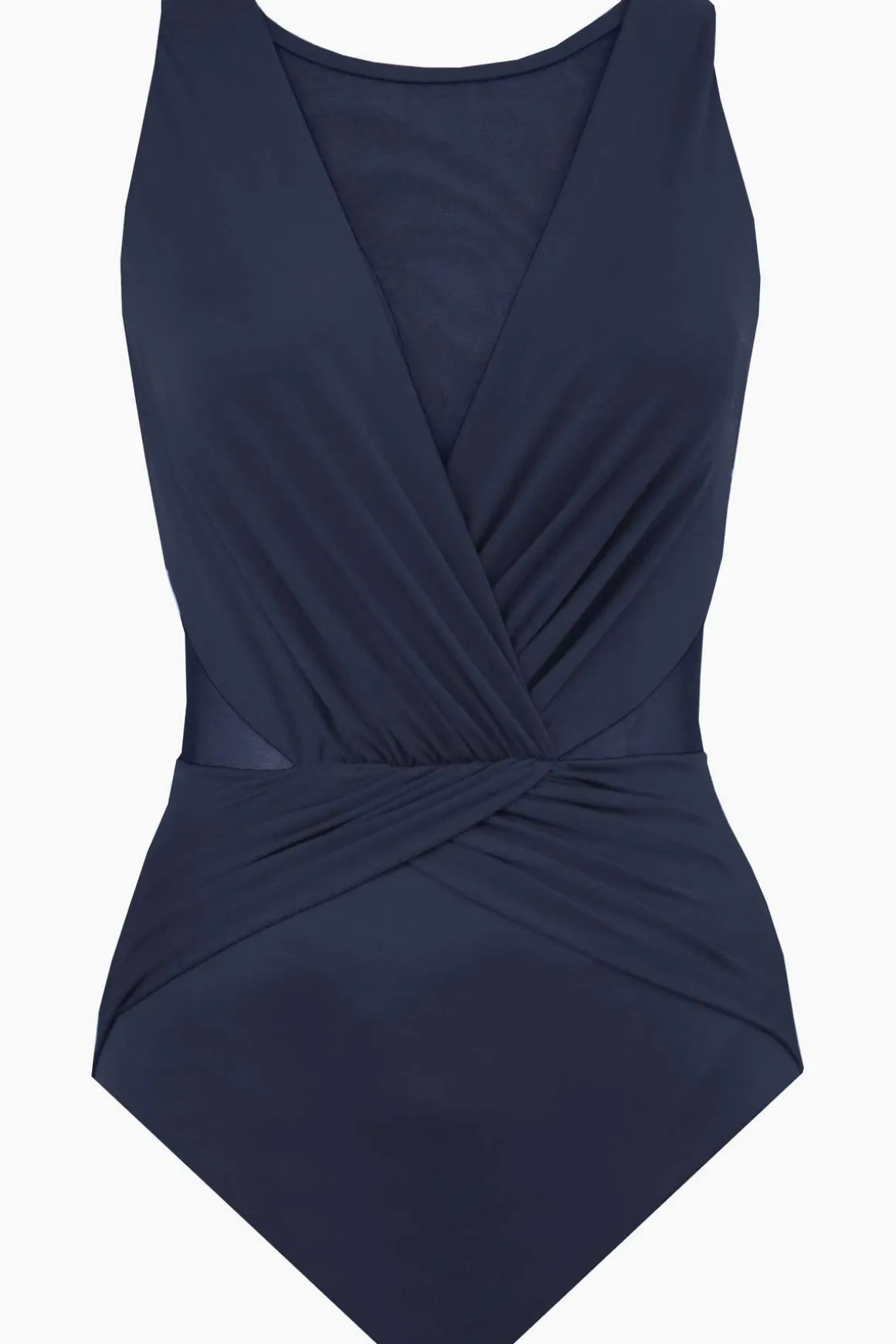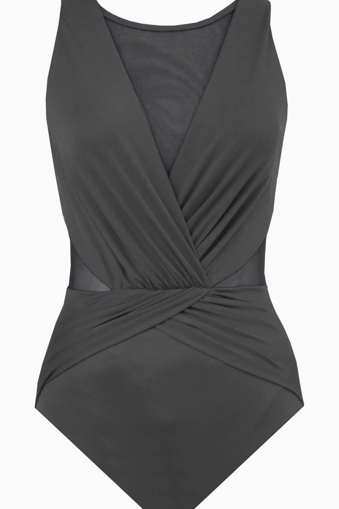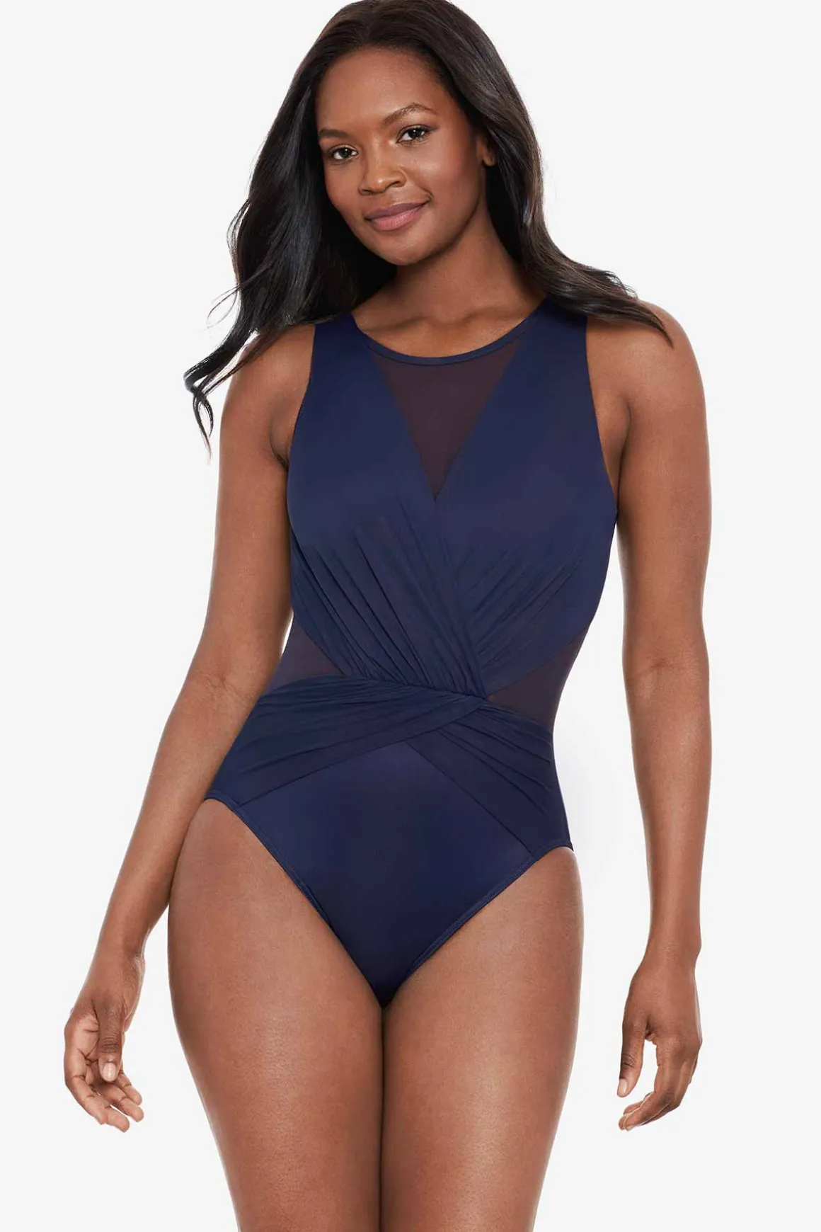 • Soft Cup Bra • Bra Can Accommodate Up To A D-Cup• Maximum Coverage For Décolletage• High Neckline • Fixed Straps • Scoop Back• Mesh Insets Provide Streamlined Control and Hourglass Waist• Miratex Fabric Provides Allover Body Control• Shapes And Slims• Moderate Leg Cut• Jasmyn Is 5’10” And Wearing A Size 8 • Drape: 82% Nylon, 18% LYCRA® Spandex• Body: 69% Nylon, 31% 18% LYCRA® Spandex• Complete Your Look With A Matching • This Style Comes In Plus! • This Style Comes In DD+ Cup!