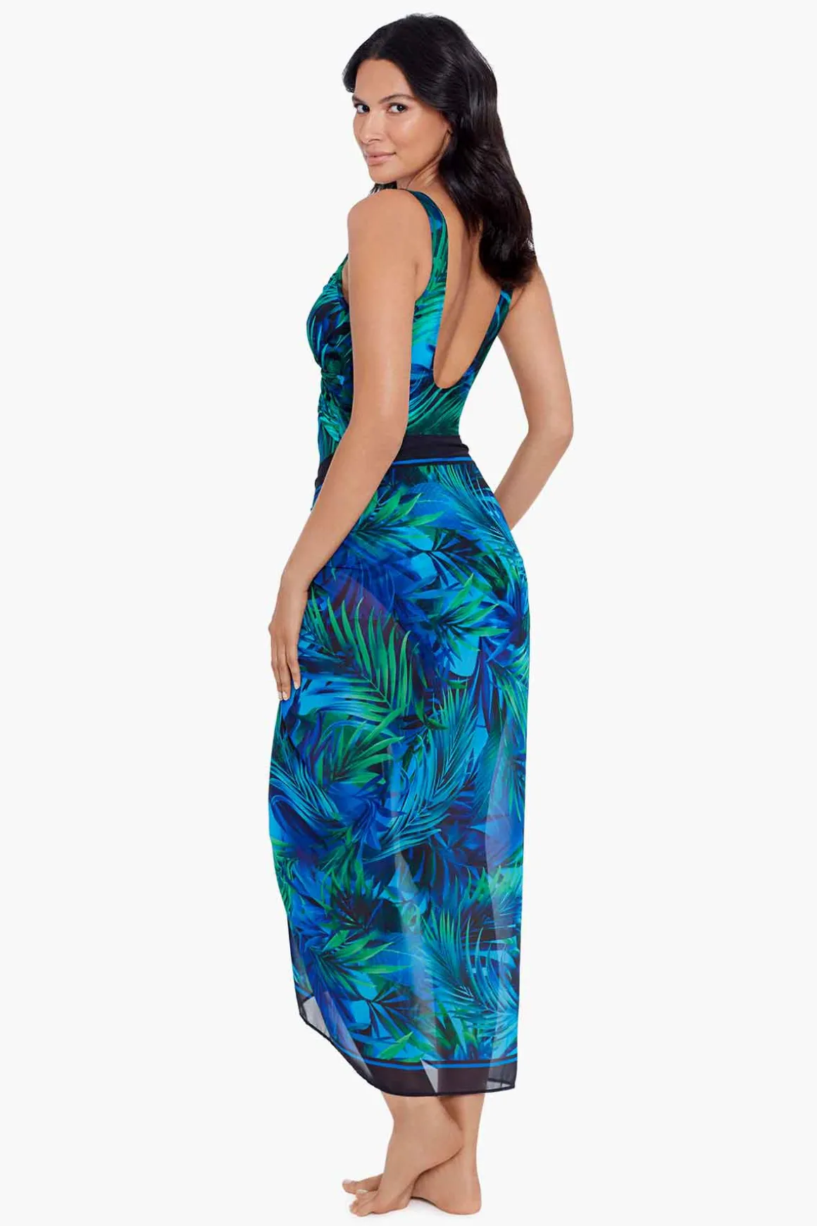 • Look 10 lbs. Lighter In 10 Seconds® With Miraclesuit • Swimwear Cover Up • Swimsuit Sold Separately • Full Coverage • Palm Reeder Print• Karen Is 5’11” And Wearing A Size 8 • 100% Polyester