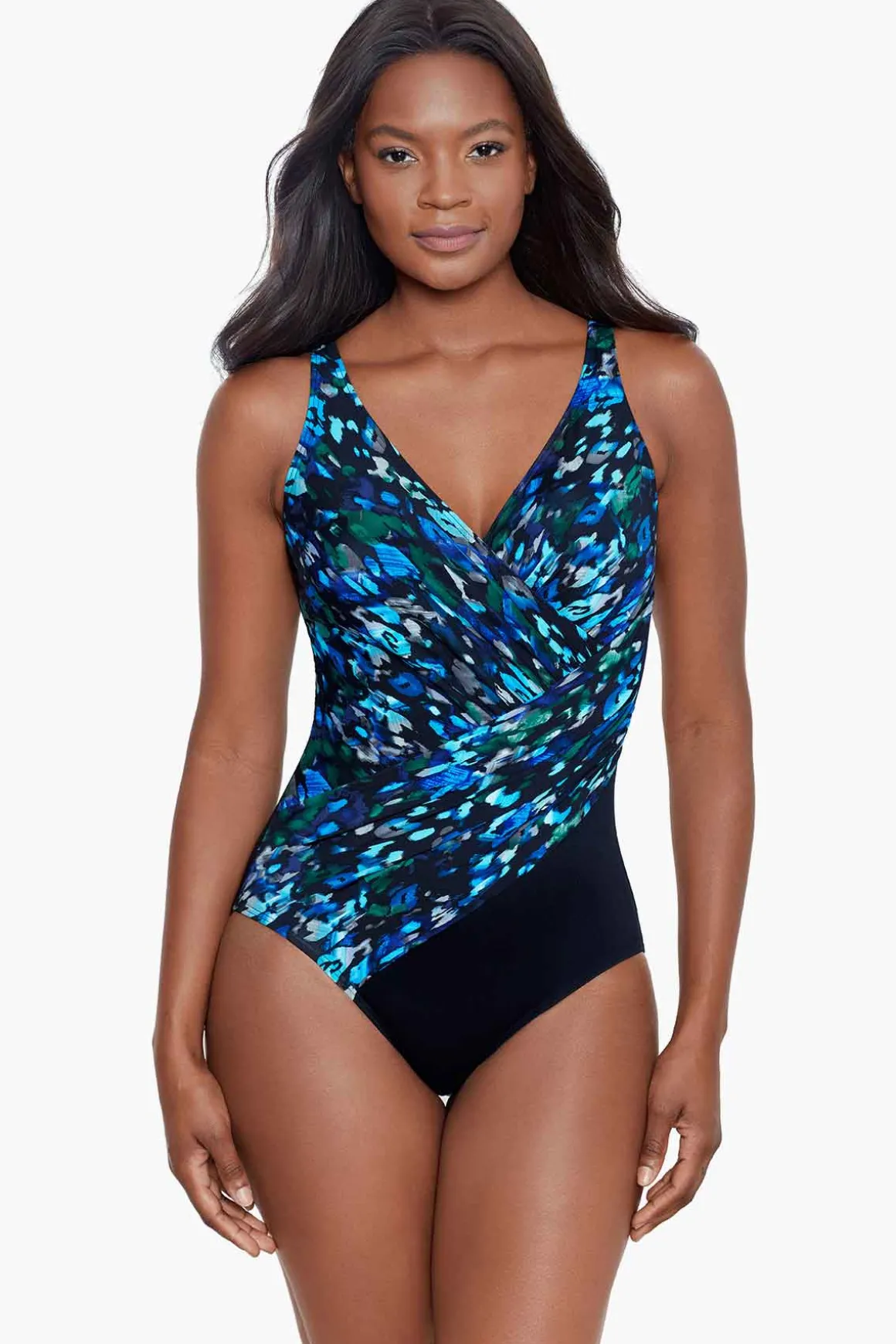 • Look 10 lbs. Lighter In 10 Seconds® With Miraclesuit • Soft Cup Bra• Bra Can Accommodate Up To A D-Cup• V-Neckline • Adjustable Straps • Scoop Back • Moderate Leg Cut • Cleverly Draped Fabric Conceals Tummy • Miratex Fabric Provides Allover Body Control • Shapes And Slims• Jasmyn Is 5’10” And Wearing A Size 8 • 69% Nylon, 31% LYCRA® Spandex • 84% Nylon, 16% LYCRA® Spandex• Complete Your Look With A Matching • Like This Silhouette? View All Colors And Prints For