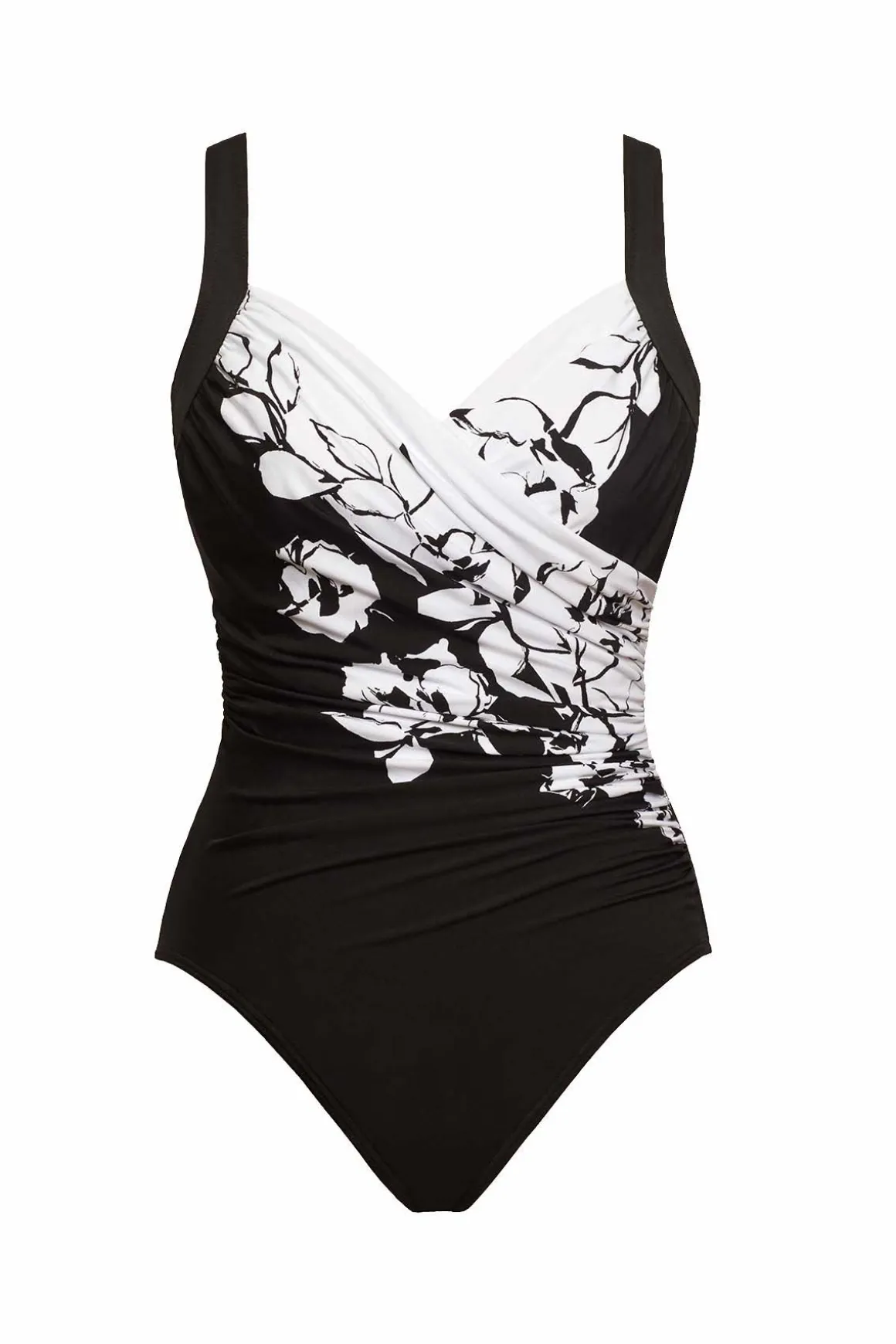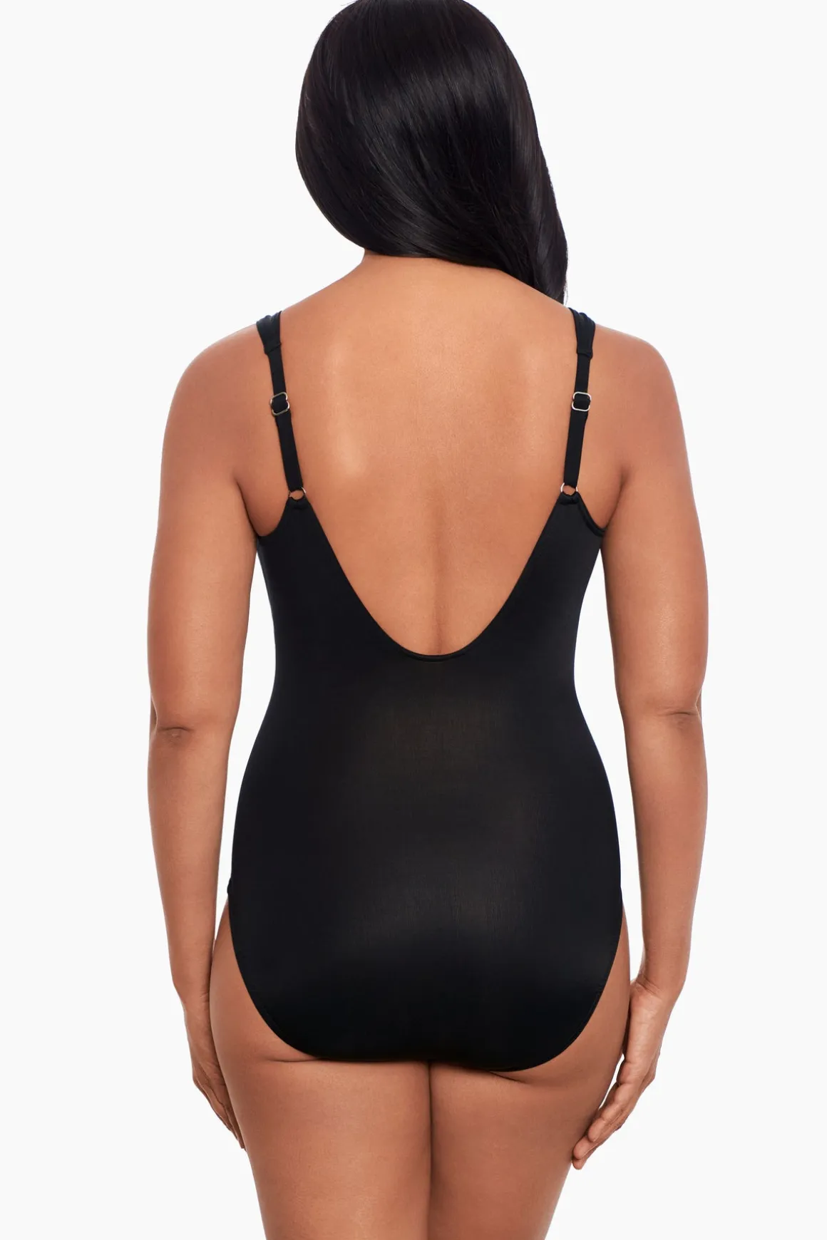 • Look 10 lbs. Lighter In 10 Seconds® With Miraclesuit• Underwire Bra • Low Scoop Back • V-Neckline • Adjustable Straps • Moderate Leg Cut• Cleverly Draped Fabric Conceals Tummy• Miratex Fabric Provides Allover Body Control• Shapes And Slims• Shanae Is 5’9 And Wearing A Size 8• Body: 69% Nylon, 31% LYCRA® Spandex• Drape: 84% Nylon, 16% LYCRA® Spandex• Complete Your Look With A Matching • Like This Silhouette? View All Colors And Prints For • This Style Comes In Plus! • This Style Comes In DD+ Cup!