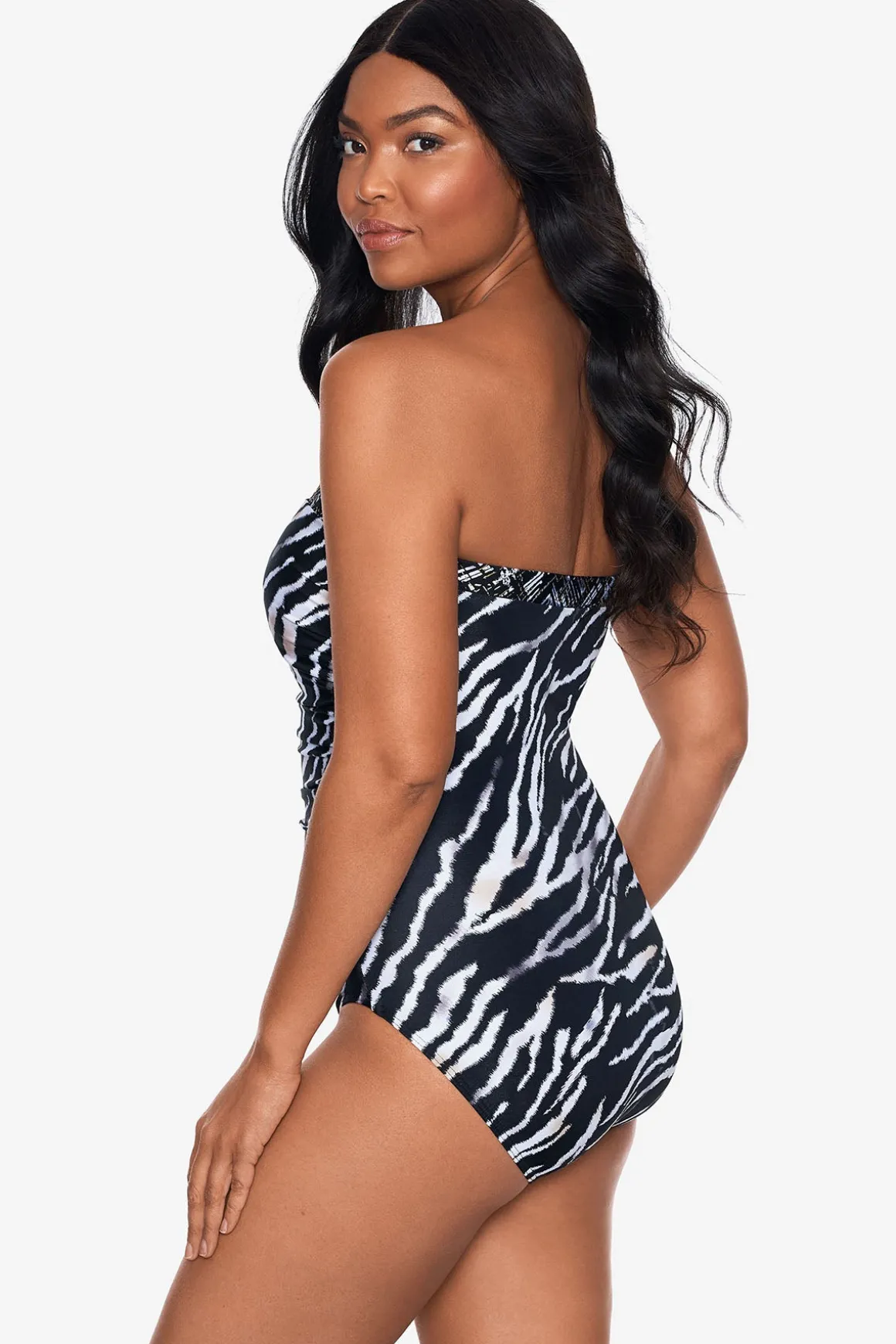 • Look 10 lbs. Lighter In 10 Seconds® With Miraclesuit• Underwire Bra • Bandeau Neckline• Silicone At Neckline For A Secure Fit • Removable Multifunction Straps• Full Straight Back • Moderate Leg Cut• Miratex Fabric Provides Allover Body Control• Shapes And Slims• Cleverly Draped Fabric Conceals Tummy And Creates Hourglass Waist• Shanae Is 5’9 And Wearing A Size 8• 69% Nylon, 31% LYCRA® Spandex• Complete Your Look With A Matching • Like This Silhouette? View All Colors And Prints For